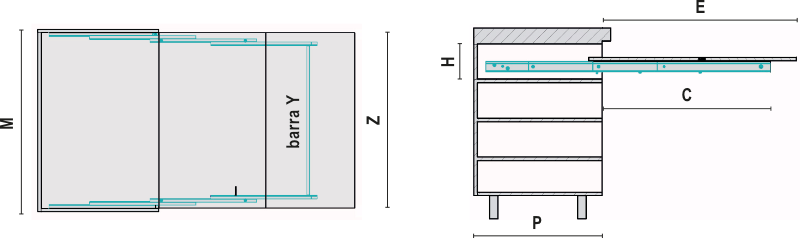 AJUSTABLE – la barra Y se puede cortar para adaptar a módulos inferiores.